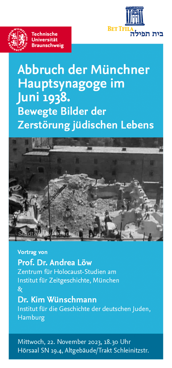 Im Stadtarchiv München sind zwei kurze Filme ohne Ton überliefert, von denen einer den Titel „Abbruch der Synagoge 1938“ trägt. Andrea Löw und Kim Wünschmann analysieren diese bewegten Bilder der Zerstörung der Münchner Hauptsynagoge. Als stolzes Symbol jüdischen Lebens wurde die Synagoge in den 1880er Jahren im neo-romanischen Stil in der Nähe zu Karlstor und Stachus erbaut. Die Filme transportieren ein bestimmtes Narrativ von einem Gewaltakt als städteplanerischer Baumaßnahme. Sie müssen kontextualisiert werden mit Fragen nach der Beteiligung von Behörden in Land und Kommune sowie beauftragten Unternehmen. Wir reagierte die Jüdische Gemeinde München und was lässt sich über die Wahrnehmung durch die Öffentlichkeit sagen?