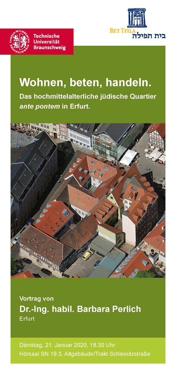 Mehrere hoch- und spätmittelalterliche Gebäude bilden den Wohn- und Handelskomplex am heutigen Benediktsplatz in Erfurt. Barbara Perlich berichtet in ihrem Vortrag Auszüge aus dem gleichnamigen Buch (Bet Tfila-Schriften, Bd. 11, Imhof-Verlag 2019), u. a. verdeutlich sie die Baugeschichte dieses heute stark verdichteten Quartiers, dessen Gründungsbauten bis in das 12. Jh. zurückverfolgt werden können. Neben der reinen Wohnnutzung ergaben sich Hinweise auf ein durch jüdische Bauherren errichtetes Kaufhaus, und, völlig überraschend, der Nachweis eines in der Mitte des 13. Jh. eingerichteten jüdischen Betraums, dessen Ausmalung weitgehend erhalten ist.